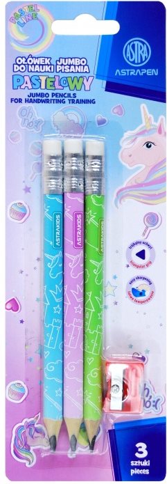 ASTRA Trojhranná tužka HB Unicorn 3ks s ořezávátkem