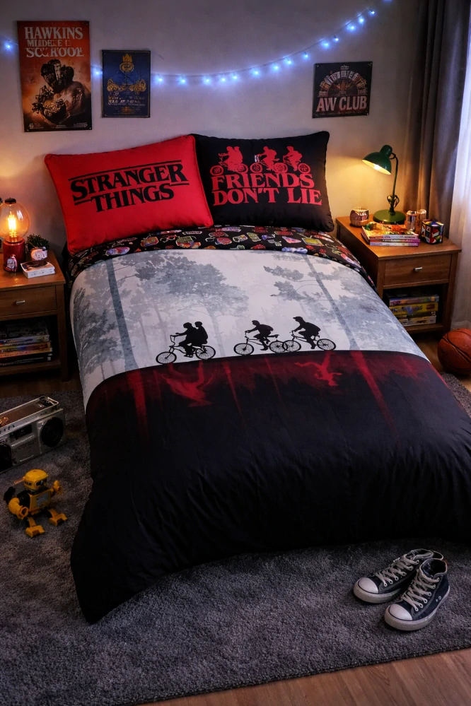 Dopřejte svým dětem krásné sny v dětském povlečení s oblíbeným s motivem Stranger Things. Toto licenční dětské povlečení se stane nejen stylovým doplňkem dětského pokoje, ale i zárukou pohodlného a klidného spánku.