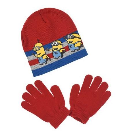 Souprava čepice a rukavice Mimoni. Červené provedení.