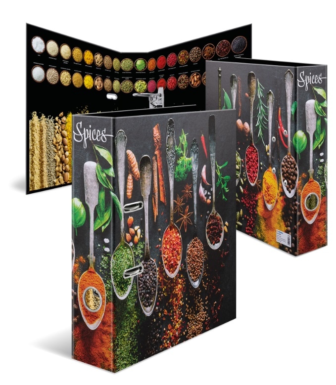 Okořeňte to! Co by byl život bez nějakého koření? Série složek motivů HERMA "Příchutě" vás vezme na kulinářskou cestu zvláštního druhu: potěšení pro oči a smysl pro pořádek. Speciální výbava: vysoce kvalitní povrchová úprava, která dělá z ušlechtilé složky absolutní špičkový produkt. Lesk a požitek na nejvyšší úrovni. Se složkou motivů HERMA "Koření" přinášíte pepř do každodenního života! Koření má dlouhou a pohnutou historii. Kvůli nim se námořníci vydali do vzdálených zemí, hledali nové námořní trasy, zažili dobrodružství a velmi riskovali. Dnes známe různé příchutě a vůně, díky nimž je naše jídlo a nápoje barevnější, chutnější a rozmanitější. Získejte barevnou paletu nejoblíbenějších koření v kuchyni, kanceláři, práci a obývacím pokoji.