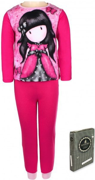 Dívčí pyžamo s dlouhým rukávem s motivem panenky Gorjuss Santoro, barevné provedení - horní díl růžový s potiskem, kalhoty růžové bez potisku, příjemný materiál: 100% bavlna, 160 gsm, dárkové balení v krabičce.