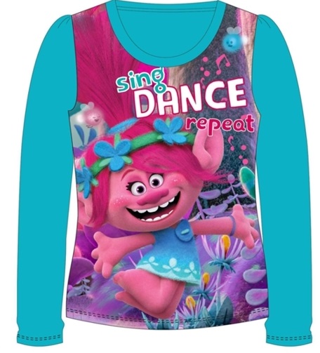 Dívčí tričko s oblíbeným motivem Trollové, materiál: 100% bavlna, 160 gsm, dlouhý rukáv, fotoprint na přední straně trička, zadní část jednobarevná.