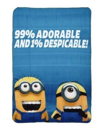 Flísová deka s motivem Mimoni. Oficiální licence. Materiál: 100% polyester - měkoučký a stálobarevný materiál. Rozměr: 100 x 150 cm. Lze prát v pračce.