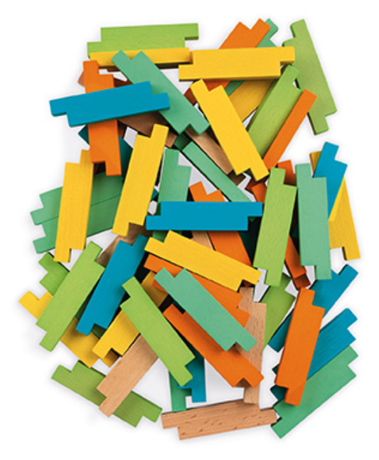 D řevěná stavebnice, která obsahuje 60 dílků v krásných barvách, které mohou děti použít k vytváření různých staveb. Malí stavitelé mohou stavět dvourozměrné nebo trojrozměrné stavby za pomocí dřevěných dílků, například věže, domy, zvířata atd . Stavebnice obsahuje 8 modelů. Různé barvy kostek vytvářejí skvělé efekty . Vymýšlejte stále nové a nové varianty . Geometrické tvary rozvíjejí prostorovou představivost a jemnou motoriku . Stavebnice je balena v kartonové krabici s bavlněnou šňůrkou. Vhodné pro děti od 4 let .