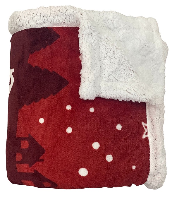 Měkoučká beránková deka v červené barvě s vánočním motivem. Druhá strana imitace ovčí vlny, velmi příjemná na dotek, nekouše. Rozměr 140x200 cm.