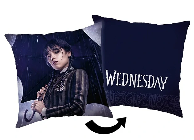Sametový povlak na polštářek s motivem Wednesday. Z každé strany je jiný obrázek. Rozměr povlaku je 40x40 cm