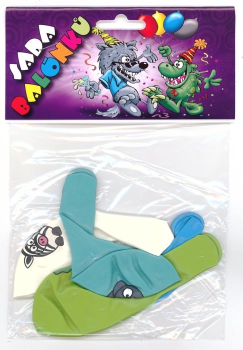 Balení obsahuje 4 kusy barevných nafukovacích balónků s potiskem zvířátek ze ZOO.