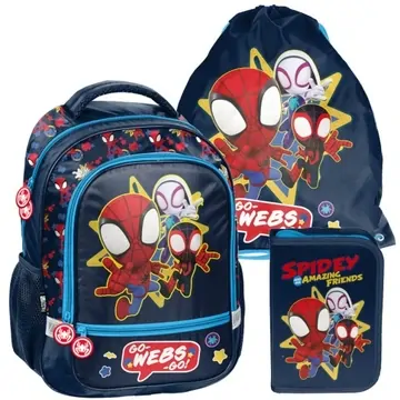 Kvalitní školní ergonomický batoh s motivem Spideyho z nové kolekce. Batoh má jednu hlavní komoru uzavíratelnou na zip, uvnitř dvě velké kapsy, dvě menší přední kapsy a dvě boční kapsy ze síťoviny. Do bočních kapes se snadno vejde termoska nebo láhev s vodou. Reflexní prvky umístěné na batohu činí dítě ještě viditelnějším a zvyšují bezpečnost dítěte. Houbou vyztužená, ergonomicky profilovaná záda a nastavitelné ramenní popruhy potažené měkkým materiálem zajistí správné držení těla dítěte a odlehčí páteři. Díky těmto vlastnostem je batoh velmi pohodlný, přenášení učebnic a sešitů je mimořádně pohodlné. Batoh je vybaven pohodlným madlem na přenášení a vyztuženým dnem. Ozdobní jezdci na zipech usnadňují rozepínání zipů. Batoh je vyroben z voděodolného materiálu - 100% polyester. Rozměry: cca 38 x 28 x 15 cm, nízká hmotnost: 480 g, vhodný pro chlapce pro I. i II. stupeň ZŠ.