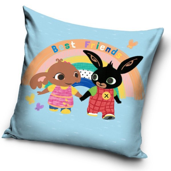 Dětský povlak na polštářek pro děti Zajíček Bing Kamarádi, je světle modré barvy a je vyrobený ze 100% polyesteru