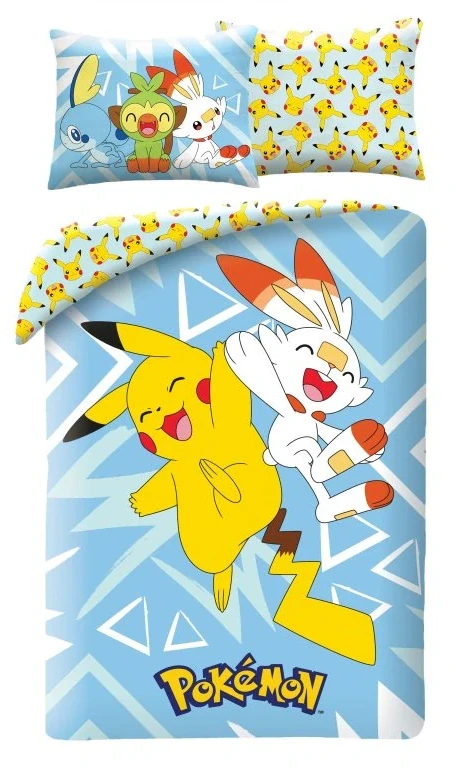 Povlečení z mikrovlákna 140x200 + 70x90 cm - Pokémon "Pikachu a Scorbunny"Skladem 4 ks435 Kč/ ks360 Kč bez DPH