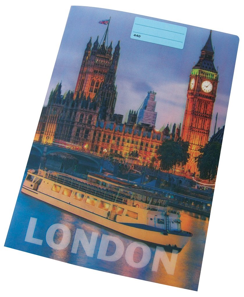 Sešit velikosti A4, 40 nelinkovaných listů. Originální obal s motivem Londýna ve 3D, vyrobený z polypropylenu kombinuje spojení moderního designu a funkce ochrany proti poškození.