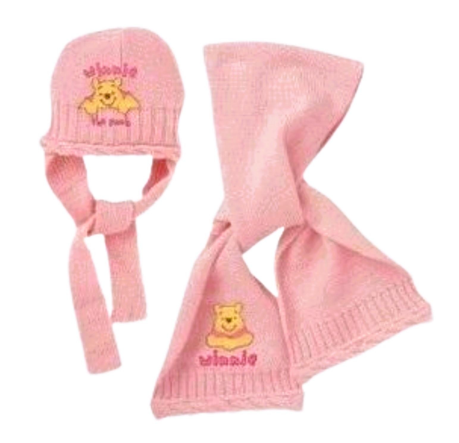 Souprava šála a čepice na zavazování Medvídek Pú. V provedení růžová. 100% acrylyc. Oficiální licence, Sun City, Francie.
