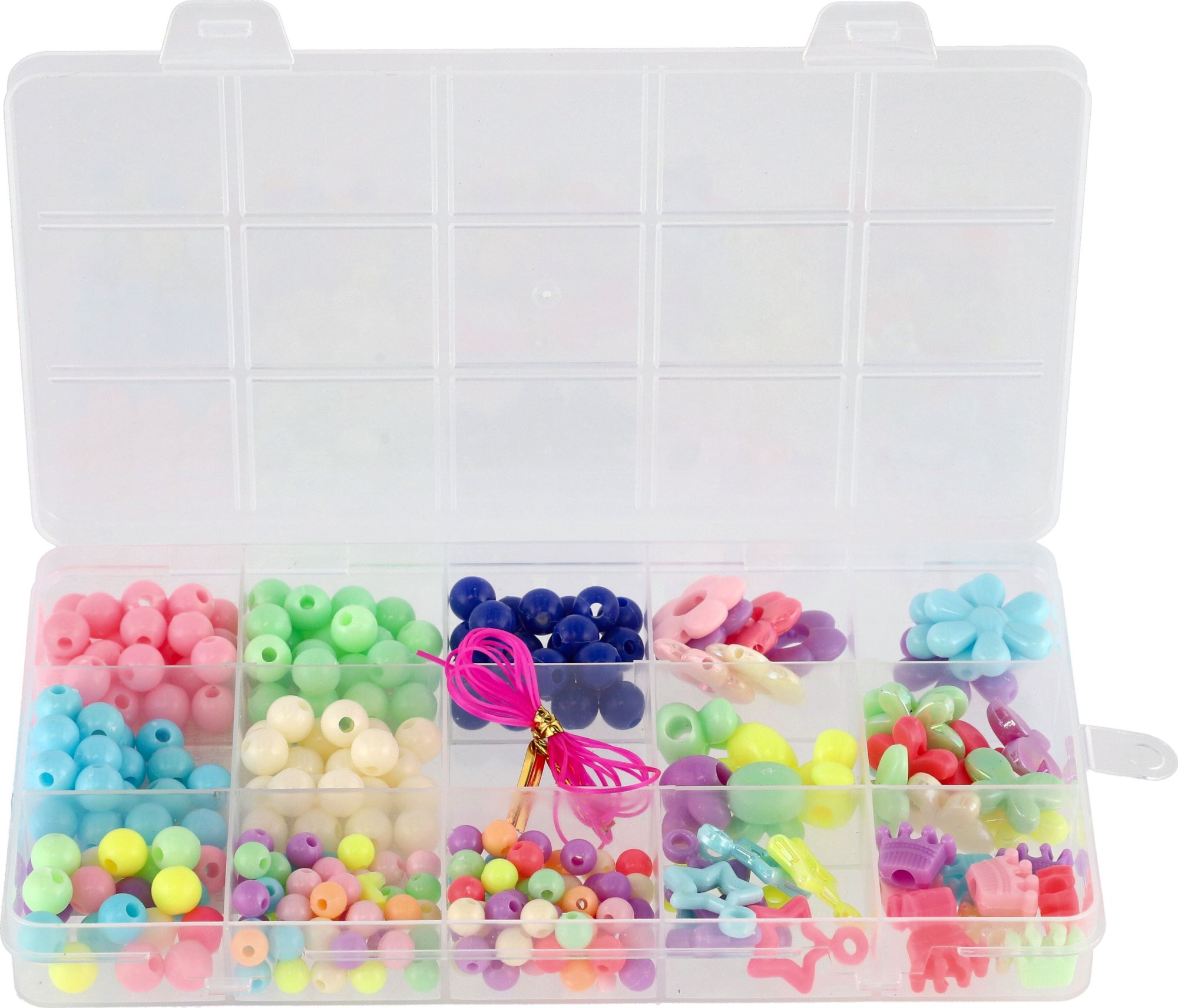 v této sadě najdete různé druhy, tvary a barvy plastových korálků