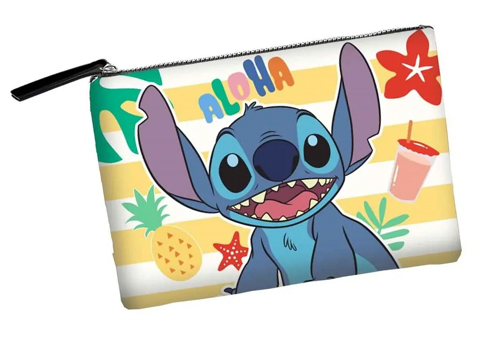 Toaletní taška, pouzdro s motivem Disney Stitch, jedna hlavní kapsa se zapínáním na zip, vnitřní podšívka. Kosmetické pouzdro na plážové produkty. Materiál: 100% polyester, pevná látka, snadná údržba, oboustranný potisk, z obou stran stejný. Dovoz Španělsko, rozměry: cca 30,5 x 22,5 x 2 cm. Vhodná pro děti od 3 let.