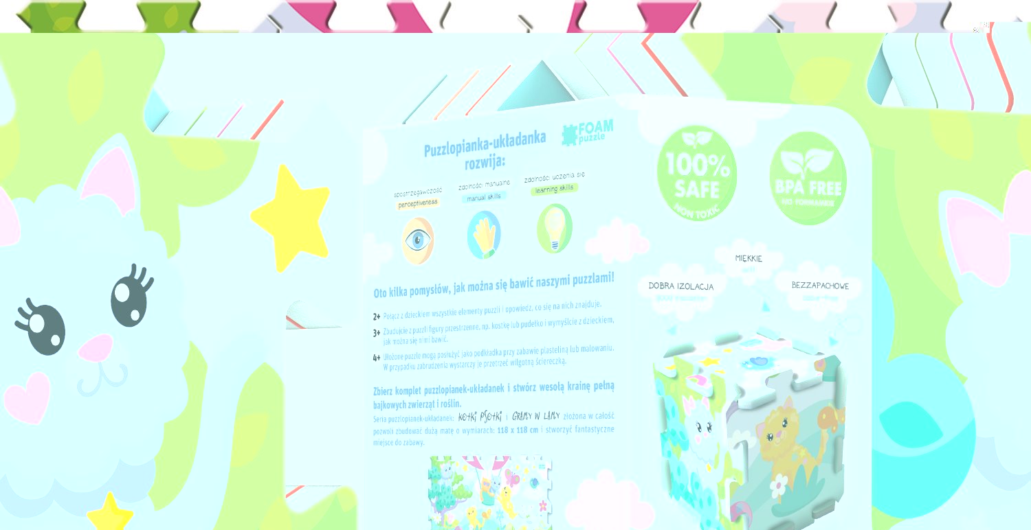 Pěnové puzzle s motivem roztomilých veselých koťat. Pěnová podložka je vyrobena ze speciálního materiálu (nejedná se o klasickou vroubkovanou EVA pěnu, ale o materiál podobný silné karimatce nebo několikavrstvému mirelonu). Má nadstandardní tloušťku 1,5 cm a je určena zejména ke hraní. Puzzle je měkké, omyvatelné, zdravotně nezávadné, je lehce manipulovatelné a skladné. Z jednotlivých dílů lze poskládat kostka, tunel pro autíčka, nebo jej lze použít jako krásnou dekoraci na stěnu. Z osmi samostatných dílů lze vytvořit plochu přibližně 117 x 60 cm. Pěnové puzzle TREFL PUZZLOPIANKA je vhodné také jako podložka při hraní s plastelínou nebo malování barvičkami. Po použití puzzle jednoduše otřete vlhkým hadříkem. Doporučeno pro děti od 2 let.