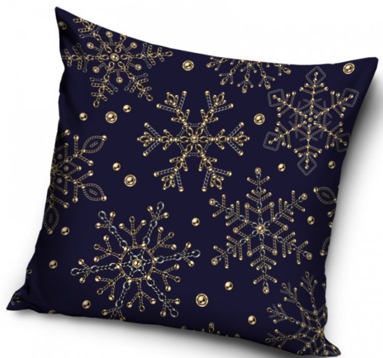 Mezi vločkami jsou i zlaté perličky, které příjemně dolaďují vzhled polštářku