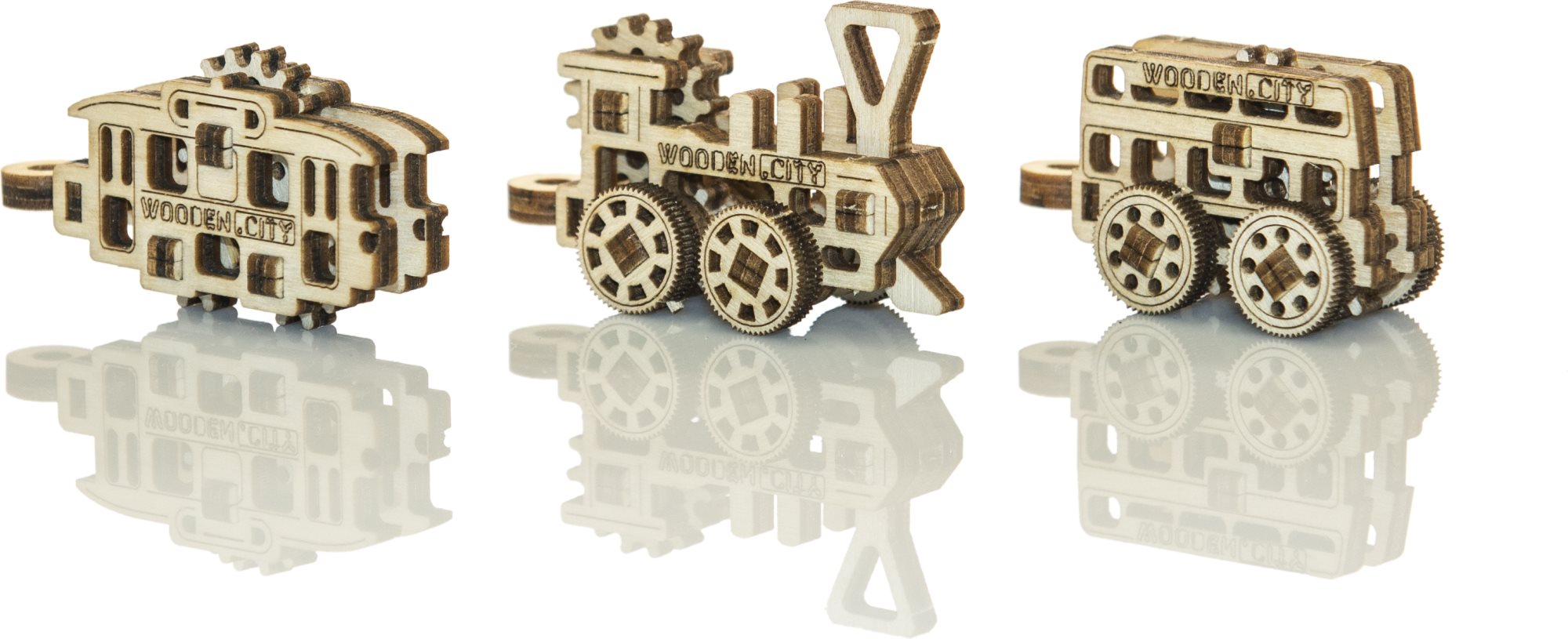 Dřevěná mechanická stavebnice sady Drobností - Widgets obsahuje 3 mini modely dopravních prostředků, které si můžete jen tak vystavit, nosit jako přívěšek nebo darovat pro radost. Díky jedinečnému designu a detailům modelů bude vaše skládání plné zábavy. 3D puzzle WOODEN CITY Widgets Public Transport je drobností, která potěší každého milovníka vozidel. Orientační doba na složení: 3 x 10 min Dřevěné 3D puzzle WOODEN CITY jsou detailně propracované funkční mechanické modely, které se skládají bez lepidla nebo nářadí. Jsou vyrobeny z ekologických dřevěných materiálů - kvalitní březové překližky. S mechanickými dřevěnými puzzle WOODEN CITY zažijete hodiny zábavy při skládání a poznáte převody, gumičkové motory, ozubená kolečka a další součástky z bezprostřední blízkosti.